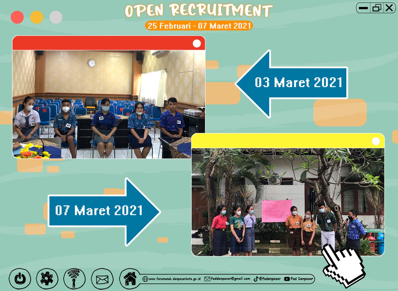 ????Halo anak Indonesia, hai anak Kota Denpasar?? Setelah FAD Kota Denpasar melakukan kegiatan Pemilu Anak Kota Denpasar 2021, kali ini FAD Kota Denpasar melaksanakan kegiatan yang masih berhubungan dengan kepengurusan baru periode 2021-2023. Kegiatan yang dilaksanakan yaitu Open Recruitment Pengurus Forum Anak Daerah Kota Denpasar Periode 2021-2023, yang dilaksanakan pada ????tanggal 25 Februari hingga 07 Maret 2021. Dimana kegiatan ini bertujuan untuk mencari anggota pengurus baru dan menggantikan pengurus pada periode 2019-2021. Pada Open Recruitment Pengurus Forum Anak Daerah Kota Denpasar Periode 2021-2023 ini mencari 36 anggota kepengurusan yang nantinya akan di data pada susunan kepengurusan periode 2021-2023. Kegiatan ini dapat diikuti oleh seluruh anak yang berdomisili di Kota Denpasar dan tentunya berusia dibawah 18 tahun????????.